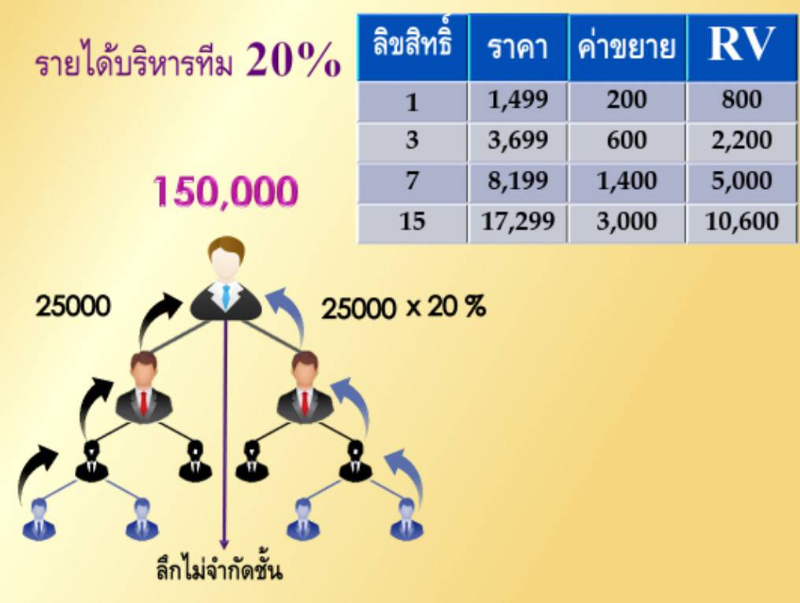 4.รับโบนัสค่าบริหารงานเมื่อเกิดการช่วยเหลือในทีมงานของคุณ20%จากRVที่บริษัทกำหนดไว้